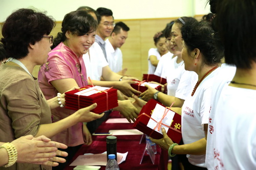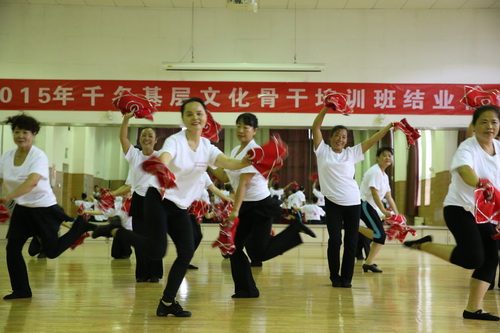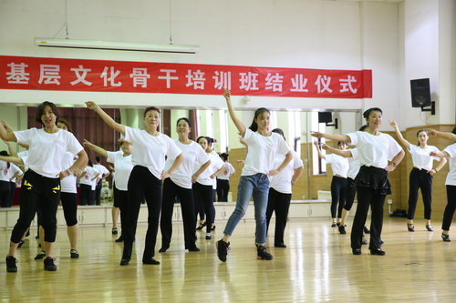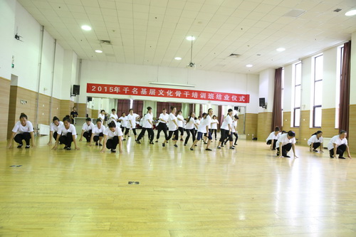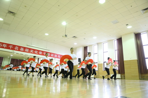 7月中旬开始,来自全市16个区县、500名基层文化骨干用20天的时间,在北京戏曲艺术职业学院参加了北京市基层文化骨干集中培训。此次培训分两批进行,第一批音乐、戏曲培训班,培训学员238人;第二批舞蹈培训班,培训学员261人;8月2日上午,来自各区县的基层文化骨干学员用《团扇舞》、《天路》、《梨花情》、《古韵新曲》《奔跑吧兄弟》等舞蹈进行了舞蹈培训的结业汇报。汇报演出赢得了阵阵掌声,汇报演出的成功标志着北京市文化局新一轮三年的“3000名基层文化骨干培训工程”(北京戏曲艺术职业学院)第一期培训圆满结束。北京市文化局副局长庞微、公共文化处处长黄海燕、北京戏曲艺术职业学院院长刘侗、党委书记刘宝华、北京文化艺术活动中心主任陈雁军、副主任张巍和全市16个区县文委等领导参加了此次活动。