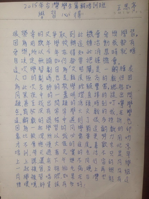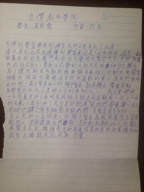 台湾戏曲学院京剧表演北京研习营系列报道——学生心得(一)