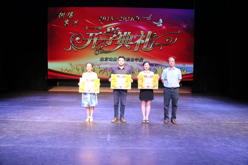 首先,学院对上一学年度评选出的优秀班集体和优秀个人进行了表彰,院领导为获奖班级和学生颁发了奖状和荣誉证书。获奖学生代表吕妍娇、郝旭和新生代表王兆男、王煜分别进行发言。