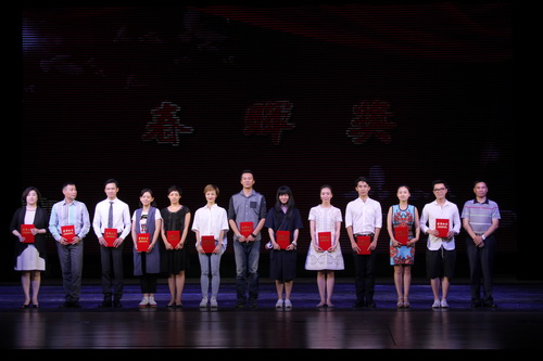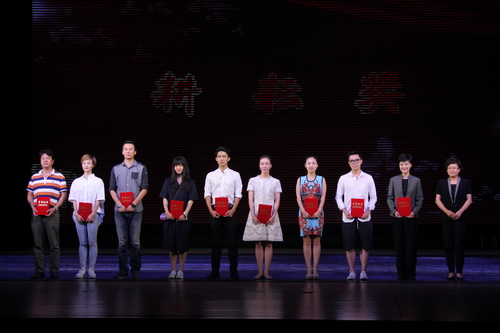 随后,副院长黄平、吴蕾、党委书记刘宝华分别宣读了2014—2015学年度优秀班主任、优秀教师、优秀工作者、先进党支部、优秀共产党员、优秀党务工作者的决定。副院长许翠、黄珊珊、党委副书记毕兆炜宣读2014—2015学年度学院“春晖奖”“育才奖”和“耕耘奖”获奖教师及部门的表彰决定,并且为他们颁发证书。学生代表刘孟千一在大会上进行发言,他代表学院全体学生对在座的老师致以深深的敬意,感谢老师们为了学生辛苦的付出,感谢他们孜孜不厌,诲人不倦。自己也将更加的努力,不令老师们失望,成为一个优秀的京剧人。