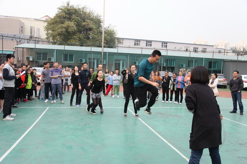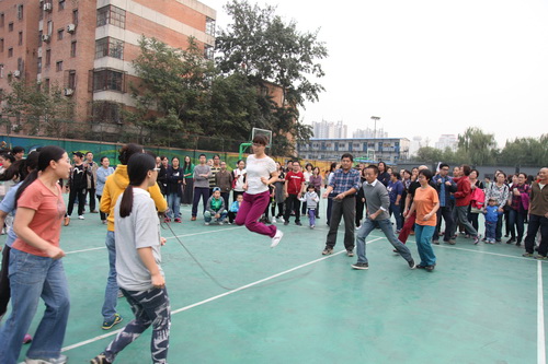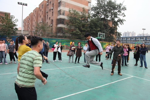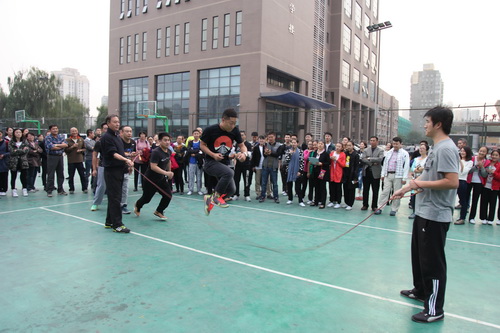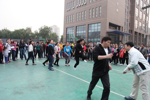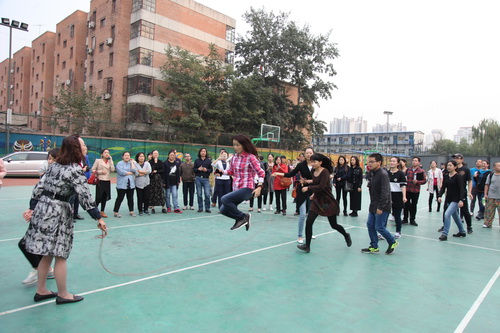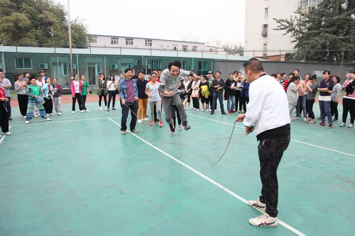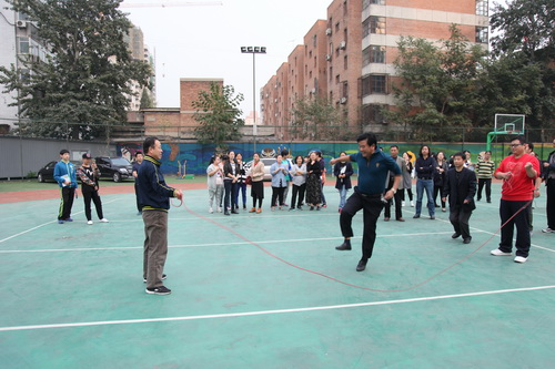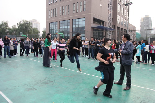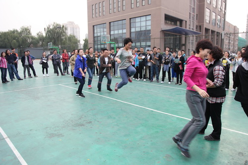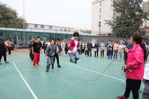 金秋十月,秋高气爽。10月14日,为了活跃职工业余文化生活,北京戏曲艺术职业学院工会举办了2015职工秋季大跳绳比赛。下午四点,全院教职员工分成12组参加比赛。院长刘侗代表院领导致辞,宣布比赛开始。随着开赛的哨响,选手们一个紧跟一个,鱼贯而入跳进“龙”门,司绳队员有条不紊,跳绳队员全神贯注,围观教职工喝彩声不绝于耳,整个赛场呈现出健康和谐的景象。