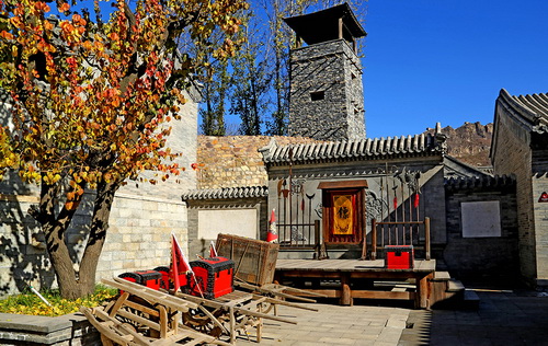 随后,大家便自由活动,漫步在古北水镇,依水而建的房屋和店铺鳞次栉比,古朴、典雅,远处的司马台长城险峻、雄浑,水依山势,山水相伴,风景如画,恰到好处地融合了江南水乡的秀丽和北方民国古镇的风韵。水镇中,精致、小巧的店铺,青石板的老街,悠长的胡同,弯弯曲曲的水道中一条条乌篷船摇曳而过,令人不禁想起那桨声灯影中的秦淮河。一路走去,信步造访永顺染坊、镇远镖局、司马小烧、八旗会馆,仿佛从久远的历史中穿越而来。驻足戏台,余味悠长的京东大鼓又让老师们卸去了疲惫,增添了几分闲暇和惬意。