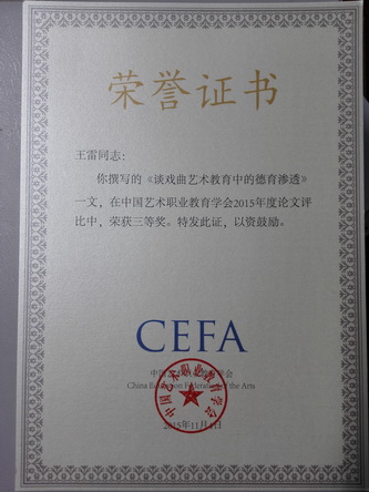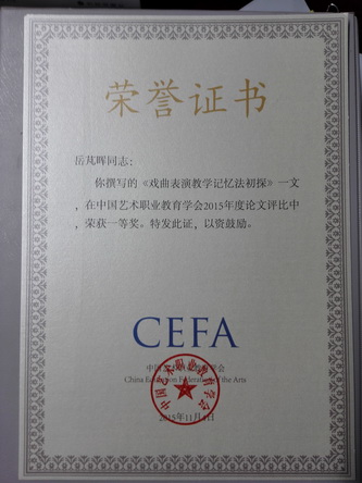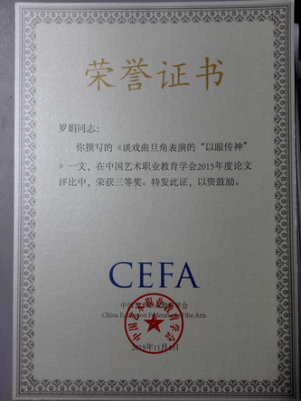 11月3日至5日,中国艺术职业教育学会第28次年会在重庆文化艺术职业学院召开。我院副院长黄珊珊参加了会议。年会期间,举行了“教育创新”论坛暨获奖论文颁奖仪式,我院教师岳芃晖撰写的论文《戏曲表演教学记忆法初探》荣获一等奖,李鑫撰写的论文《浅谈舞蹈作品人物创作的情感性》荣获二等奖,罗娟撰写的论文《谈戏曲旦角表演的“以眼传神”》和王雷撰写的论文《谈戏曲艺术教育中的德育渗透》分获三等奖。