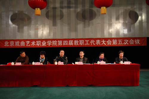 为了充分体现学校的民主管理,积极推动学院依法治校的工作进程,在学院工会的积极组织筹备下,2015年11月20日,北京戏曲艺术职业学院第四届教职工代表大会第五次会议在排演场四层召开。院长刘侗、党委书记刘宝华、党委副书记、工会主席毕兆炜、副院长黄珊珊、黄平、吴蕾出席了会议。参会的正式代表69人,实到61人,特邀代表24人,实到23人,会议由工会主席毕兆炜主持。
