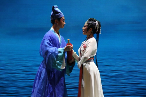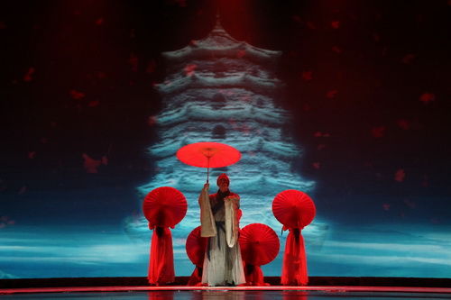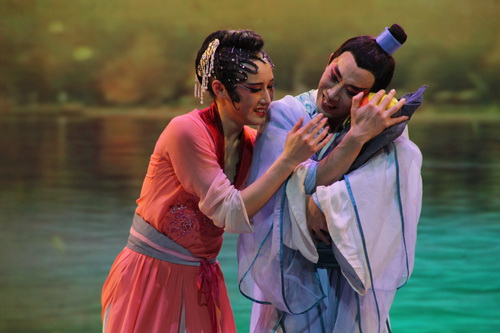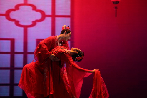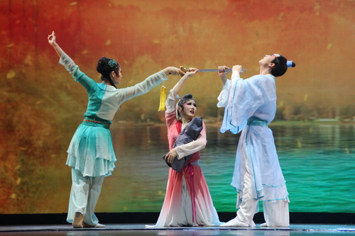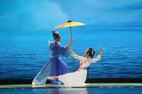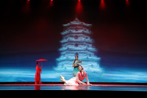 学院积极探索艺术职业教育的发展之路,此次赴津带来的三部剧目正是这些尝试和探索的成果汇报。原创舞剧《夕照》是国家艺术基金2014年资助项目,该剧以戏曲的舞蹈手段反哺中国古典舞建设发展。全剧创排以学院所开设的“戏曲舞蹈”特色课程为基础,把剧目创排和教材编写相结合,利用剧目实践活动,推动和检验教材建设,开展特色课程。剧目改编自家喻户晓的传统戏曲经典爱情故事《白蛇传》,用古典舞蹈独有的方式为我们讲述了千年蛇精白素贞与书生许仙的浪漫爱情。全剧表现“美”,突出“情”,强化“剧”,在吸取生、旦、净的程式化元素基础上,运用中国古典舞的表现手法,塑造人物性格。既为观众讲述了一段凄婉动人的爱情故事,也用现代的科技手段为观众上演了一场视觉盛宴。