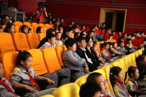 学生们聚精会神的观看演出
