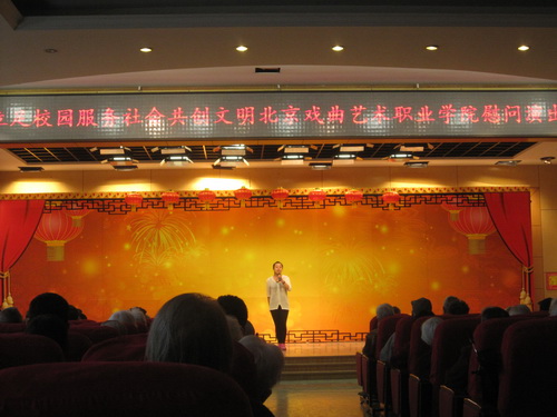2016年4月24日上午,学生处(团委)、行政学生工作党支部教师代表与学生代表及部分院学生会成员一行50余人组成慰问团,前往北京市四季青敬老院,为居住在那里的老人和工作人员表演了丰富多彩的文艺节目,与老人们一起度过了一个愉快的上午,同学们精彩的演出赢得老人们阵阵掌声。