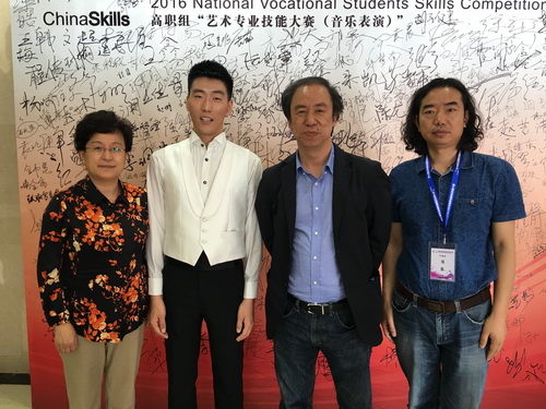 5月16日,2016年全国职业院校技能大赛高职组“艺术专业技能大赛(音乐表演)”赛项美声唱法第一轮比赛在我院排演场一层举行;沈阳音乐学院刘辉,人民音乐出版社赵易山,中国歌剧舞剧院单秀荣,中央歌剧院阮余群,上海音乐学院周温玉,浙江音乐学院王维平,中国音乐学院附中郭荫黎、李科平,江苏第二师范学院韩德森,江苏省文联音乐家协会杨丽娟,浙江省长三角非物质文化遗产研究院黄大同,安徽省歌剧舞剧院陈蕾担任比赛评委;江苏省文化厅科教与产业处张人健担任大赛仲裁组组长,组员有文化部文化科技司教育处何亚文、教育部全国职业院校技能大赛执委会办公室成员贺伟华;江苏海事职业技术学院周涛担任大赛监督组组长,组员是沈阳市旅游学校刘伟老师。