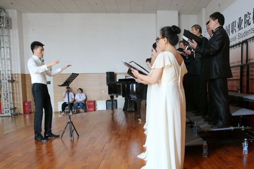 5月18日,2016年全国职业院校技能大赛高职组“艺术专业技能大赛(音乐表演)”赛项美声唱法第二轮比赛在我院综合教学楼702举行;人民音乐出版社赵易山、中国音乐学院附中李科平、安徽省歌剧舞剧院陈蕾担任美声唱法比赛评委。
