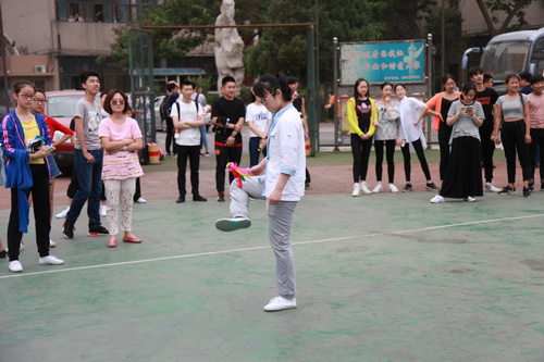 此次比赛项目有“雷霆战鼓”、“沙包掷准”、“协力竞走”、 “单人跳绳”、“单人踢毽子”、“定点投篮”6个项目,分别分高中组与初中组两个组别来进行比赛。烈日炎炎,但同学们热情高涨,不惧炎热,奋力比赛,积极努力为班级争光。