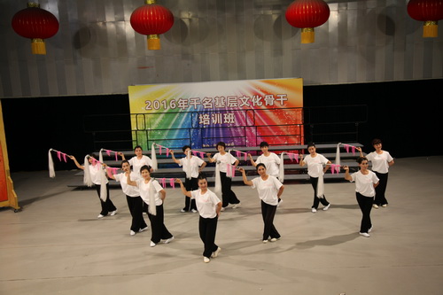 今天,来自北京市16个区县的226名基层骨干全部参加汇报,汇报剧目包括:京剧班《霸王别姬》选段、《穆桂英挂帅》选段、《三家店》选段、《智取威虎山》选段、《贵妃醉酒》选段、《秦香莲》选段等。评剧班《乾坤带》选段、《杨三姐告状》选段、《金沙江畔》选段。音乐班葫芦丝独奏《龙的传人》、《我和你》、《望春风》和合奏《月光下的凤尾竹》、《婚誓》,合唱与指挥《茨冈姑娘》选自茶花女、《深情颂歌献给党》、《春游》、《长征组歌》七律、《游击队之歌》、《黄水谣》、《思念》。通过10天的学习,学员们了解我国公共文化方面的政策法规、了解首都公共文化发展现状,并通过不同专业的实践课程,掌握一门回到岗位后可面向广大群众普及的文化技能。这次培训以容易普及和大众喜闻乐见的戏曲、音乐为基础,贴近基层文化推广的特点,更适合群众的需求,因此学员们非常珍惜这次学习的机会,每天进行超过10个小时的排练,就是希望能够把内容记牢,带回基层进行推广。