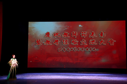 9月的北京,秋风送爽。7日下午16:00,学院庆祝教师节表彰暨教学经验交流大会在少儿戏剧场隆重举行。北京市文化局党组副书记、副局长吕先富、北戏院长刘侗、党委书记刘宝华、党委副书记兼纪委书记毕兆炜、副院长黄珊珊、黄平、许翠以及北戏全体教职员工出席了大会。大会由青年教师李洋主持。