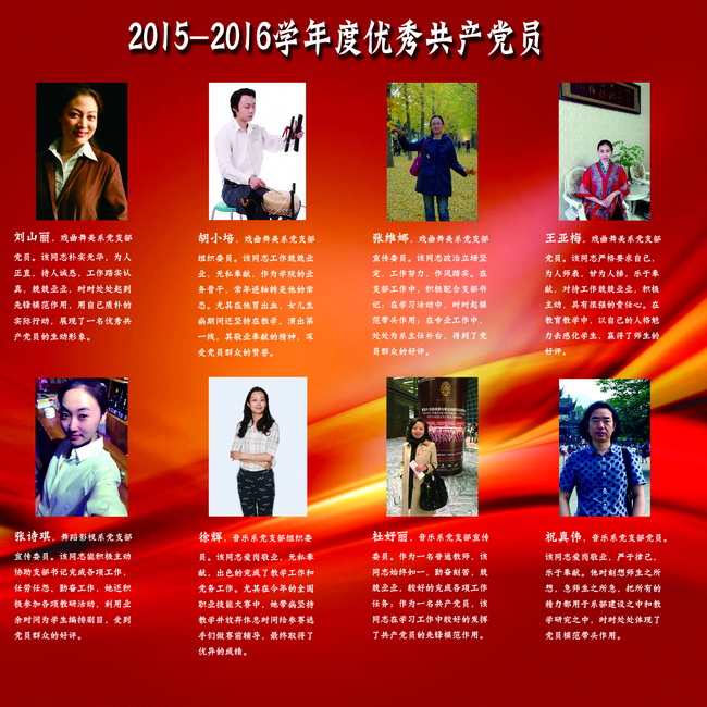 随后,荣获学院2015—2016学年度优秀班主任、优秀教师、优秀工作者、优秀共产党员、先进党支部、优秀党务工作者,获“春晖奖”“育才奖”“耕耘奖”的教师和部门,以及今年首次获得“北京高校教学名师奖”和“北戏标兵”的祝真伟、王晓燕、刘靖三位老师依次上台,接受吕先富副局长和学院领导为他们颁发的证书。优秀教师代表孙秀兰、陈杰、吕洁、祝真伟、王晓燕、刘靖分别将自己在教学或管理工作中的心得体会、宝贵经验与全体教师分享。大家再次深刻感受到北戏教师树德育人的高尚情操,以及他们精益求精做事,脚踏实地做人的人生信条。