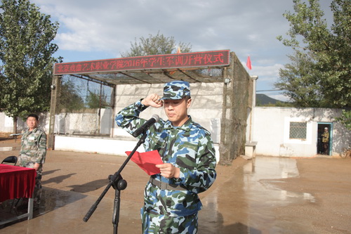 最后,学生代表带领全体参训学生进行宣誓,2016年军训开训仪式在宣誓声中结束。