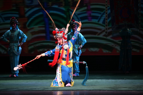近年来,石家庄市艺术学校培养出了一大批出类拔萃的艺术人才,为文化艺术事业的发展做出了积极贡献。在校生屡次在全国少儿戏曲大奖赛、全国“红梅”戏曲大奖赛、全国“小梅花”少 儿戏曲大奖赛、中央电视台学生京剧大赛、全国文华艺术院校大赛、全国职业技能大赛中成绩突出。戏曲表演专业是石家庄市艺术学校的优势传统专业,深厚的教学功底结出了丰硕的成果。 此次参加展演的剧目既有教师原创的戏舞《袖韵》,也有经典折子戏《上天台》《扈家庄》《天霸拜山》,还有京胡演奏、京剧基本功展示这样的学生日常训练节目。戏舞《袖韵》是石家庄市艺术学校于冰、张淑静二位教师原创作品,作品巧妙地将京剧身法与古典舞元素巧妙融合,新颖的创意和优美的动作将观众带入美轮美奂的意境,该剧目多次登上央视春晚和戏曲春晚的舞台。《扈家庄》中扈三娘的扮演者周梦慧小小年纪却有着扎实规范的基本功,表演干脆利落,赢得掌声阵阵。《天霸拜山》中黄天霸由石家庄艺术学校教师王兰奎扮演,唱念身段都极其规范,窦尔敦则由北戏教师王亮亮出演,两位老师配合严谨,武戏文演,通过念白和表演展现了人物的心理活动。基毯身把是戏曲学生打基础的四门课程, 石家庄艺校的老师为了提高训练积极性,激发学生的学习兴趣,在不违背教学规律的前提下对基础课进行了一些教学改进,把组合与音乐融入到基础课训练中,既提高了学生的学习兴趣,又使学生在训练中掌握了乐感、节奏感和韵律感,增加了学生的表演意识,改变了基础课单调枯燥的现状,为剧目学习打下了坚实的基础,学生们的精彩表演深受现场观众喜爱。