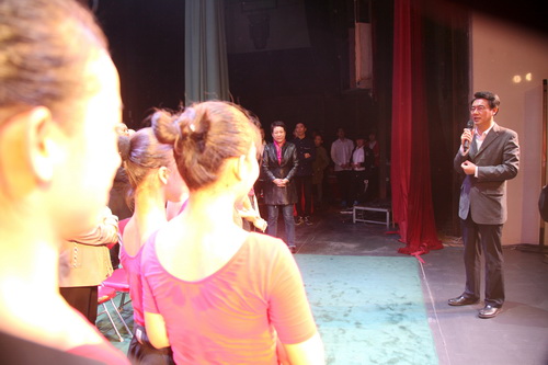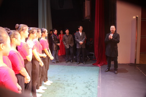 石家庄市艺术学校党委书记张岩在演出前讲话