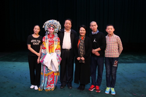 著名京剧表演艺术家张艳玲(居中,女)、天津艺术职业学院院长范恩源(居中,男)与演出学生合影