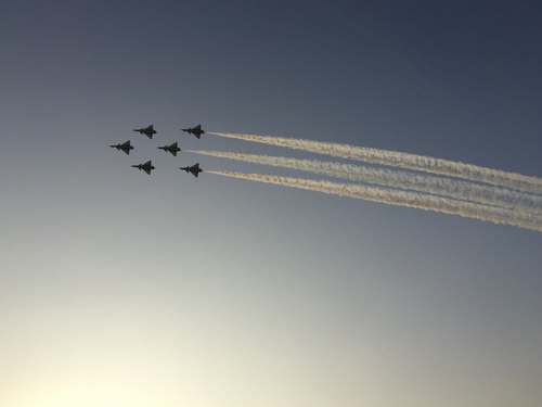 活动最后一项,观摩八一飞行表演大队的飞行表演,飞行员们高超的飞行技术和精准的特技表演,带给了我们超强的震撼,使我们更加为祖国的强大而无比激动,这样的军队、这样的高素质军人,是我们走向富强和胜利的坚强后盾。