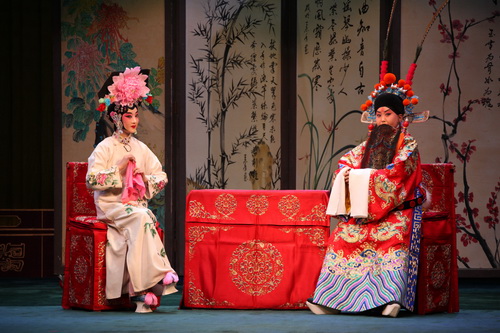 党委书记刘保华和京剧表演艺术家关静兰观看演出