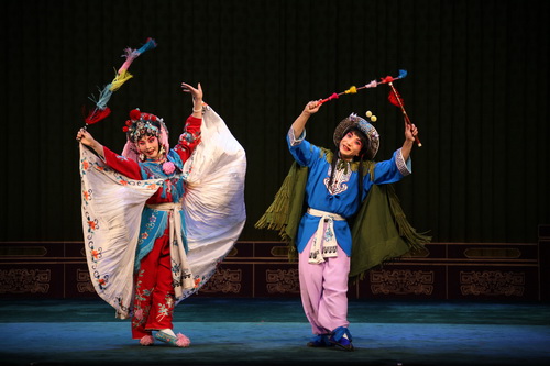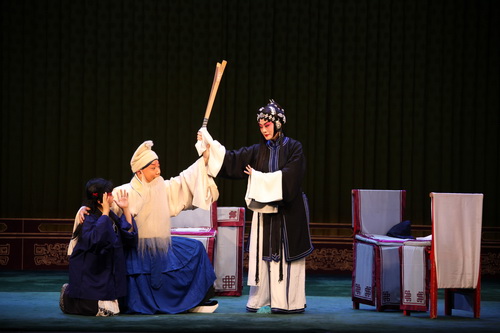 10月27日下午2点,随着一场秋雨的到来,京津冀艺术教学汇报交流演出已经接近尾声,北京戏曲艺术职业学院教师专场作为压轴奉献了一台精彩的折子戏演出,将北戏少儿戏剧场从秋雨的寒意中隔绝开来,各地专家、老师、学生和观众们冒雨前来观看演出。北戏教师演出了经典京剧折子戏《小放牛》《三娘教子》《祭塔》《小商河》,尽展风采。