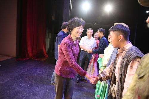 演出结束后,到场的领导和专家亲切地接见了本场演出的全体演员并合影留念。首都文明办副主任卜秀均、北京市文化局副巡视员马文、人民音乐出版社黄志鹏主任、北京戏曲艺术职业学院院长刘侗和党委书记刘宝华先后讲话,对演员们的表演和工作人员的努力给予了高度肯定。