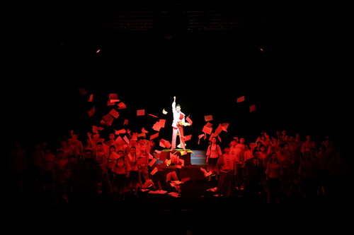 大剧院小剧场被艺术的氛围充盈,北戏师生精彩的演出深深地打动了在场的学生和观众,话剧《守护》让不少观众潸然泪下,音乐剧《国之歌》激发了大家的爱国热情,剧终的国歌声响起,全场观众情不自禁地全体起立,与台上演员一齐高唱国歌,在激昂的音乐中圆满完成了本次演出。北戏师生在院长刘侗的带领下创排《中华美德故事汇》,一直秉承精益求精、不断创新的“工匠精神”,所有的努力正是为了舞台上这一刻的精彩呈现。演出结束后,“最美少年”代表们接受了我们的采访,他们被剧中的人物和故事深深地感动,表示获奖仅仅是一个开始,他们要学习剧目中主人公们坚守承诺、爱国奉献的优良美德,发挥榜样的力量,继续传播正能量,努力传承中华传统文化、弘扬中华传统美德。
