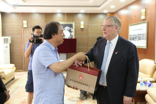 MILLS先生本人表示对中国传统京剧文化有着浓厚的兴趣,此次访问北戏,对北戏的热情接待表示由衷的感谢,并承诺会尽全力与特朗普总统沟通,邀请北戏赴美国交流演出。
