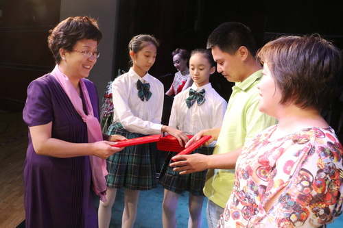 最后,北京市文化局副巡视员马文向全体教师致以节日的问候,向受表彰的教师表示热烈的祝贺。他充分肯定了一年来北戏所取得的各项成绩。他希望全体教师如既往地追求教育理想,应抓住契机,利用资源,挖掘自身特色,科学规范地开展艺术教育,培养出高素质的艺术职业技术人才。我希望我们的老师要以创建“一流高职院校”为目标,继续奋斗,为社会主义文化大繁荣大发展而贡献自己的力量,促成学生们实现艺术的梦想。