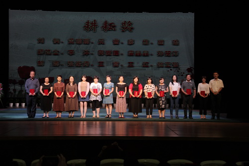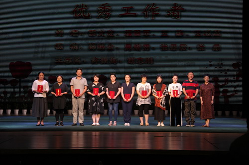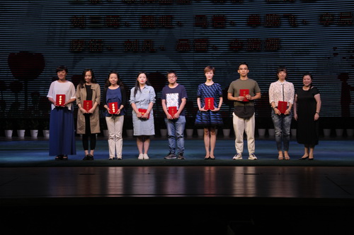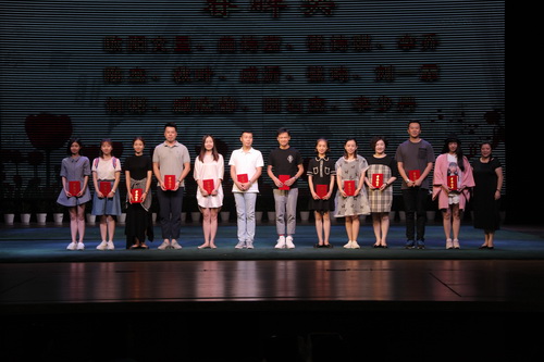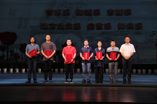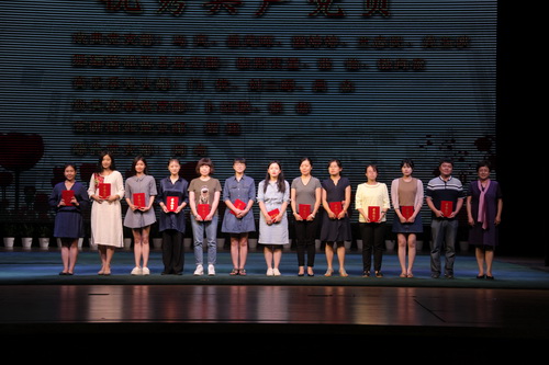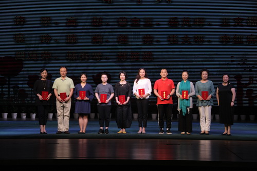 随后,荣获学院2016—2017学年度优秀班主任、优秀教师、优秀工作者、优秀共产党员、优秀党务工作者、先进党支部,获“春晖奖”“耕耘奖”“育才奖”的教师和部门,以及今年获得“北京市优秀教师”和“北戏标兵”的徐辉、陈杰、刘靖、王晓燕、张怡、郭文花依次上台,接受北京市文化局副巡视员马文及学院领导为他们颁发的证书。