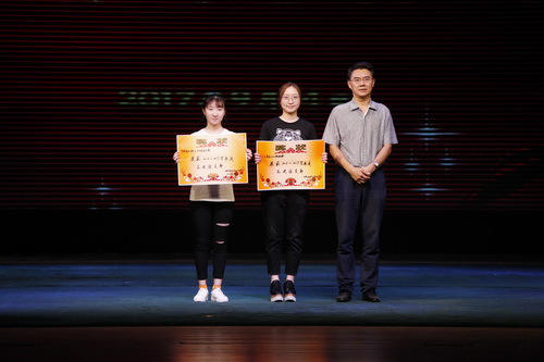 民舞2012班徐莹同学代表获奖学生发表了获奖感言,曲艺2017班王弋兮作为新生代表发言。