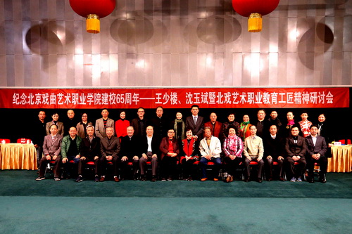 10月28日上午,为了回顾六十五年来北京戏曲艺术职业学院的发展历史,促进京剧艺术的传承发展,深入研讨以王少楼、沈玉斌为代表的北戏教师在艺术职业教育领域教书育人的成功经验,进一步弘扬北戏艺术职业教育工匠精神,促进学院提高教育教学质量,北京戏曲艺术职业学院在北戏少儿戏剧场举办“纪念北京戏曲艺术职业学院建校65周年——王少楼、沈玉斌暨北戏艺术职业教育工匠精神研讨会”。北京市文化局副巡视员马文,中国评剧院、北京市河北梆子剧团、黑龙江省评剧艺术中心、黑龙江龙江剧院等等知名剧院团领导,中国戏曲学院、唐山艺术学校等教育机构领导,李玉芙、孙毓敏等表演艺术家、北戏知名校友,研究机构学者及王少楼、沈玉斌先生家属,学院领导及教师等200余人参加了研讨会。