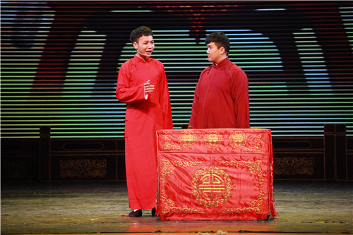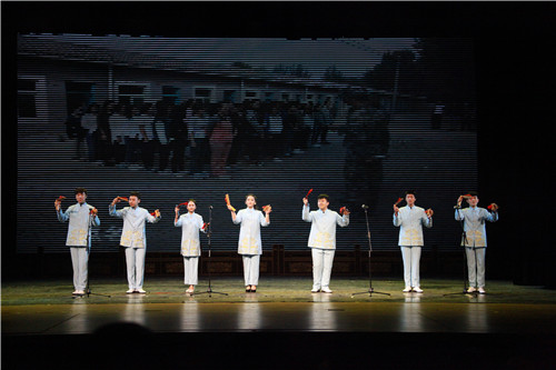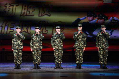 同时,我院五名退伍学生也为大家带来了精彩的表演唱《当那一天来临》,他们身着军装,手持钢枪,在嘹亮的歌声中为大家展现了军人的飒爽风姿;刚刚入学的曲艺大一新生,把半个月的军训生活编演成一段群口快板《军训赞歌》,伴随屏幕上放映的一张张军训照片,使在场所有学生忆起军训时的苦辣酸甜,感触颇深。