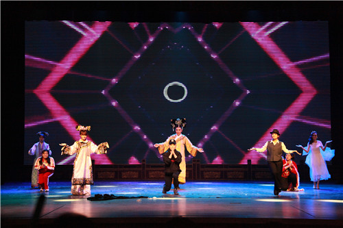 平日里的“幕后英雄”舞美系的同学们也在当日由幕后走到了台前,他们自编自导自演的歌舞小品《改变自己》、Show《舞•美•秀》,用夸张的表演、别出心裁的服装、令人捧腹的角色反串和专业的舞美灯光为大家呈现了别样的精彩节目,赢得了观众的阵阵掌声。
