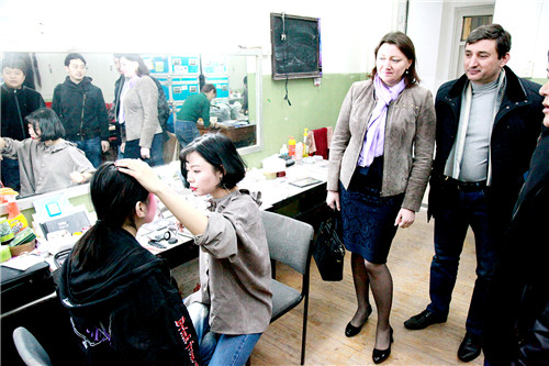 在随后的行程中,伊娜院长和安德烈主任主要对我院的专业教学情况进行了考察了解。到舞蹈和影视的专业课堂进行了观摩教学,亲临音乐系的钢琴技能校内选拔赛和星期音乐会观看学生演出并点评,到舞美系化妆间观看舞美造型专业的化妆技巧。在紧张的行程中,伊娜院长还特意抽出时间为音乐系小提琴专业的学生开展了一堂大师课,对我院学生进行亲自的示范教学指导。