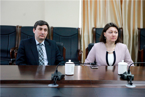 刘侗院长在讲话中表示,能让学生们有一个更好的艺术殿堂来哺育成长,是所有教育工作者的共同愿望。他代表学院向伊娜院长和安德烈主任来我院参观考察表示诚挚的敬意,希望卢甘斯克国立大学文化与艺术学院对我院学生希望去贵校学习的愿望给予考虑和研究。