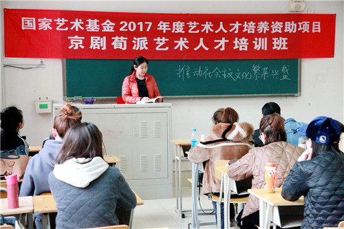 国家艺术基金2017年度艺术人才培养资助项目—《京剧荀派艺术人才培训班》在刘侗院长和项目负责人许翠副院长的组织领导下,在学院各部门的认真工作和支持配合下,历经了31天的集中培训。聘请荀派艺术传承人,著名京剧表演艺术家孙毓敏老师、刘长瑜老师、宋长荣老师,聘请荀慧生大师长孙国家京剧院著名导演荀皓老师和六位中青年荀派艺术继承人为授课老师,为来自北京、天津、重庆、吉林、大连、江苏、淮阴、广西、河南、青海、安徽、潍坊、新疆等15个省市,包括国家京剧院、北京京剧院、天津京剧院、天津市青年京剧团等16个院团培养荀派艺术接班人。教授荀派六个代表剧目《红娘》《霍小玉》《辛安驿》《杜十娘》《荀灌娘》《红楼二尤》、六次讲授荀派表演艺术的理论课和一次十九大精神的学习。