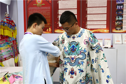 博览会上,我院以“体验京剧文化,感受梨园魅力”为参展的主题和宗旨,精心设计了互动体验、影像资料展示、京剧折子戏演唱等,通过丰富多样的形式向广大游客呈现京剧艺术的独特魅力。其中互动体验环节的设计尤为别开生面,既有京剧脸谱的制作,又有京剧服装扮戏的体验,吸引了不少游客的热情参与。在博览会大舞台演出的京剧折子戏也很出彩,由我院京剧系不同行当的三位优秀青年教师崔月、陈晨、哈福丽分别上演了《铡美案》、《坐宫》的精彩唱段,让游客们进一步过足了戏瘾。