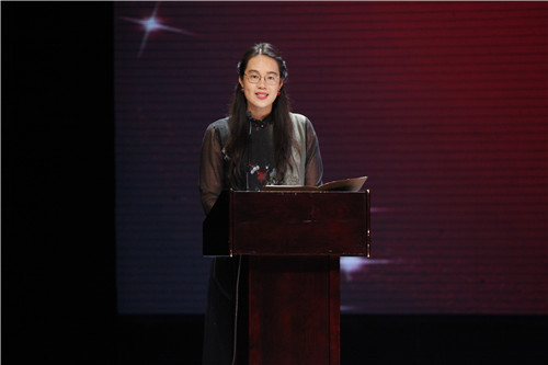 学生主持人任玉宣读各类比赛获奖名单
