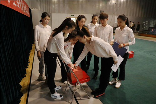 会议开始前,9名候选人用抽签制决定竞选演讲顺序。抽签结果依次是:高职音乐2017班李雨瑶、高职昆曲2018班黄缨淇、高职舞美技师2018班周玉萌、高职舞蹈2018班齐奥琳、高职舞蹈2018班蒲姣怡、高职舞蹈2018班宋子钊、中专评剧2015班胡玥、高职影视2018班赵恩墨、高职曲艺2017班姜子叶。