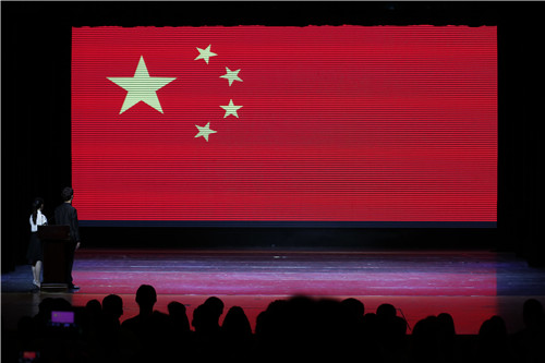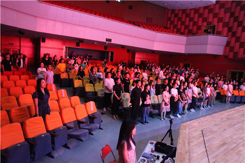 随后,进行典礼第二项,奏唱国歌。在庄严肃穆的国歌声后,舞蹈系李乔老师作为教师代表致辞。李乔老师用“祝贺”、“期待”和“祝愿”三个词语表达了对全体高职毕业生的希冀与祝福。她告诫同学们要勇于挑战,勇于承担艺术传承的重担;要心存美好,保有善良,天天向上;要一直努力,不断前行,厚积薄发,静待花开。最后祝愿同学们在人生的道路上可以全力以赴、披荆斩棘、终有所获,成为母校的骄傲!