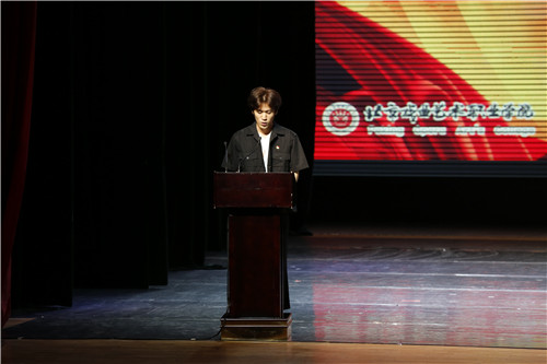 接下来,影视系2016班戴源鸿同学代表全体高职毕业生致毕业感言。他首先感谢学院领导和老师们三年来的谆谆教诲以及学院所有工作人员的辛勤付出。同时,戴源鸿代表全体2019届高职毕业生承诺,一定会牢记恩师们的谆谆教诲,恪守道德、学问、处世、行事之正,勤于实践、踏实做事,一步一个脚印书写出精彩的艺术人生,用不懈的努力与成功来回报社会,回报母校,为母校争光添彩。