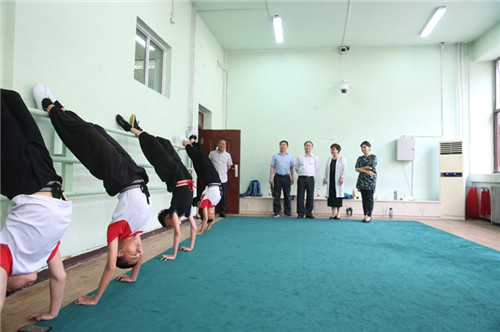 9月17日下午,文旅局局长宋宇、巡视员史安平、人事处处长田金贵一行到我院进行调研。宋宇局长一行在我院党委书记毕兆炜、副院长吴蕾、许翠等人的陪同下,先后视察了我院的校园、教学楼、排演场,并到专业教学课堂和京剧艺术展厅进行了观摩参观。在视察的过程中,宋宇局长对我院的教学、基建、发展沿革等情况进行了详细询问了解。