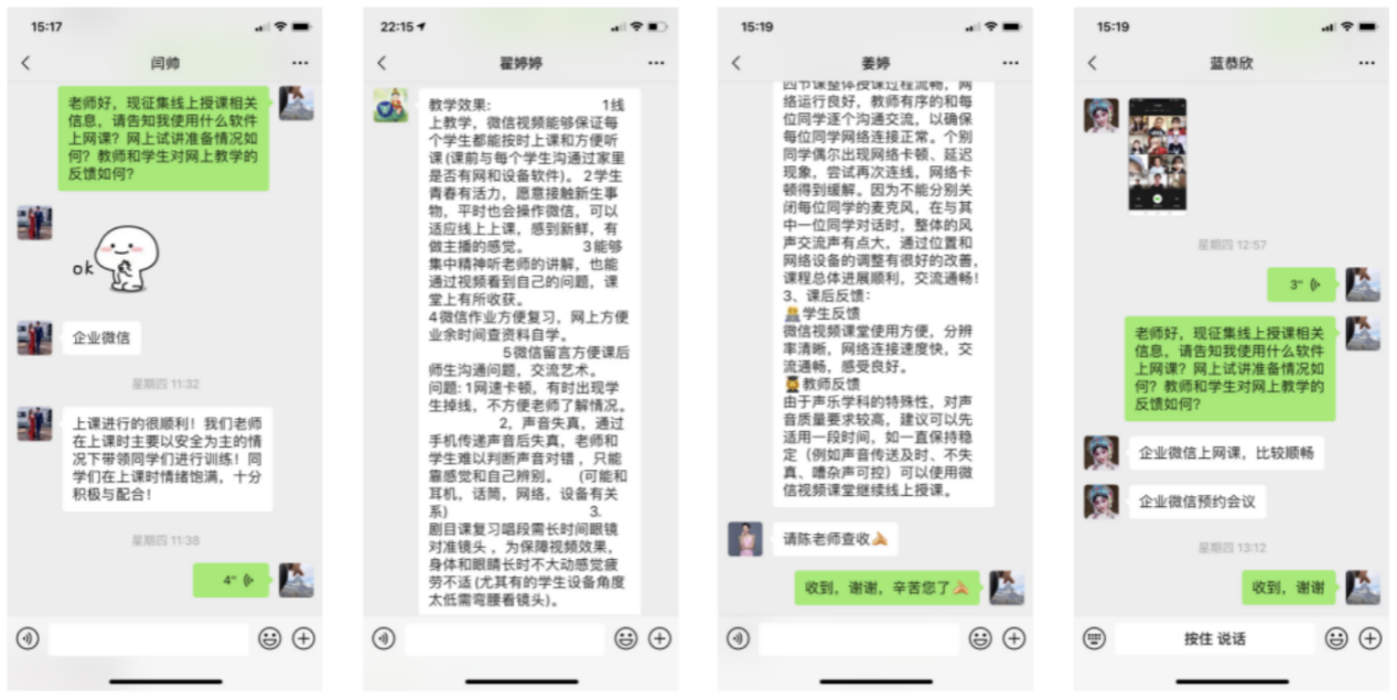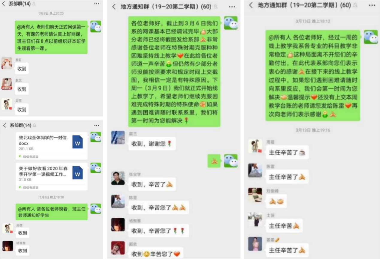 系部作为线上教学的“服务者”,努力提供有温度的教学支持,不断收集教学过程中教师与学生的意见反馈,全面充分地了解情况,及时发现问题、解决问题,确保每位教师都能顺利的开展工作。