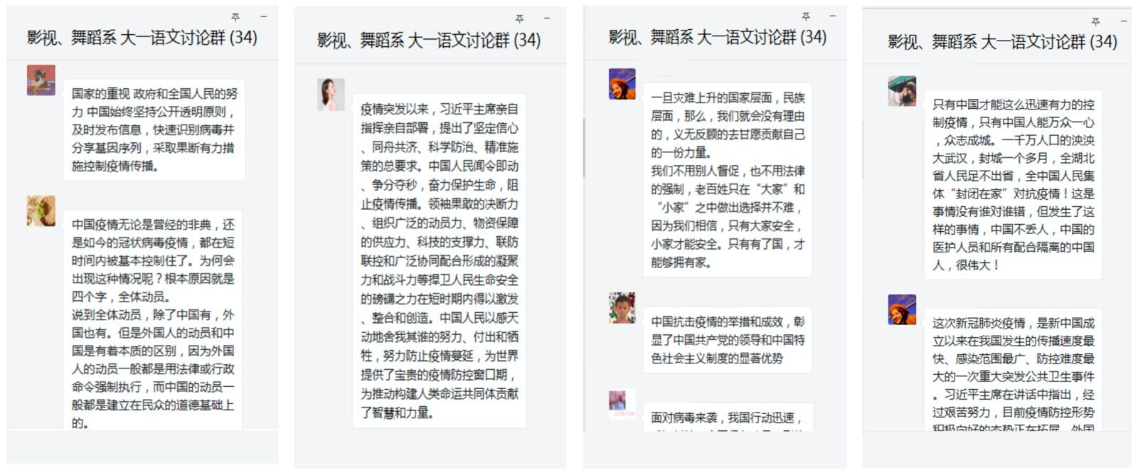 该环节通过组织学生在微信群上展开讨论,以培养学生的思辨力和担当精神。学生意识到: