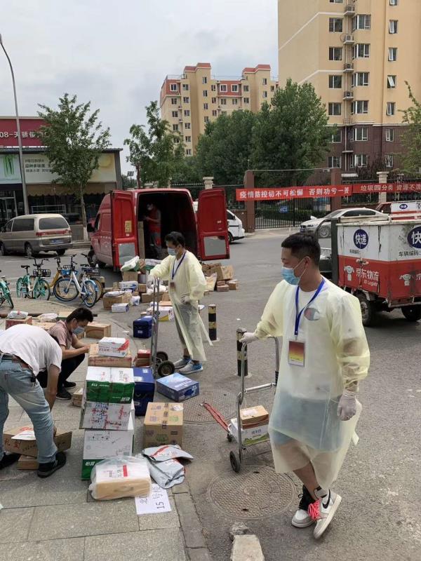 根据社区工作安排,纪培宁每天早9点至12点,下午13点至17点全天为居民订购的蔬菜、日用品等货物进行配送以及承担快递的转运工作。特殊时期再加上先前的“6.18”大促活动,社区5000多人的送货量便可想而知,货品更是五花八门,大到洗衣机,小到温度计,要逐个送到居民楼门口再联系居民下来领取,从清点到转运配送,这些工作需要耗费很大的精力和体力。