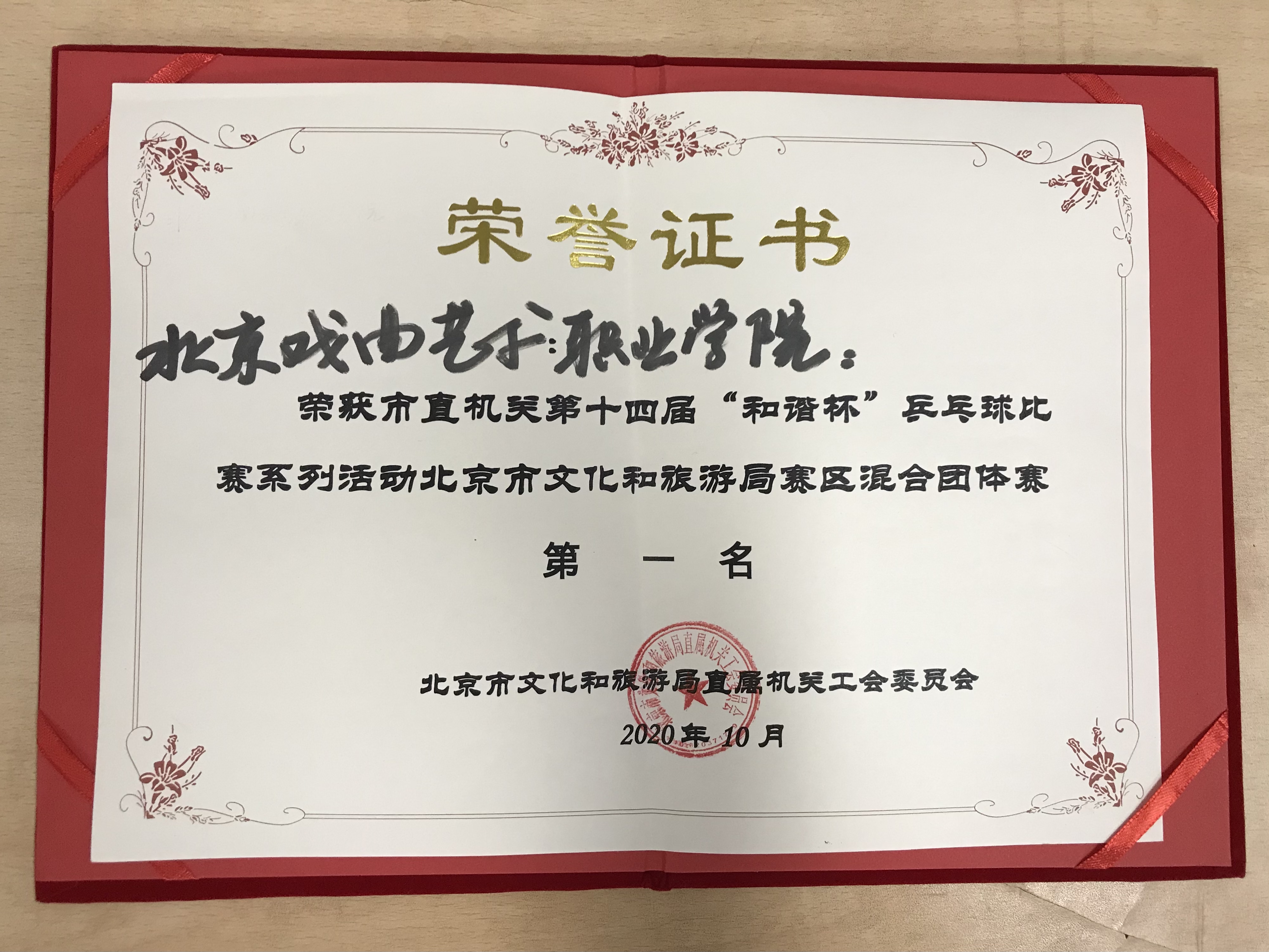 10月26日,北戏乒乓球代表队勇夺市直机关第十四届“和谐杯”乒乓球比赛系列活动北京市文化和旅游局赛区比赛冠军。