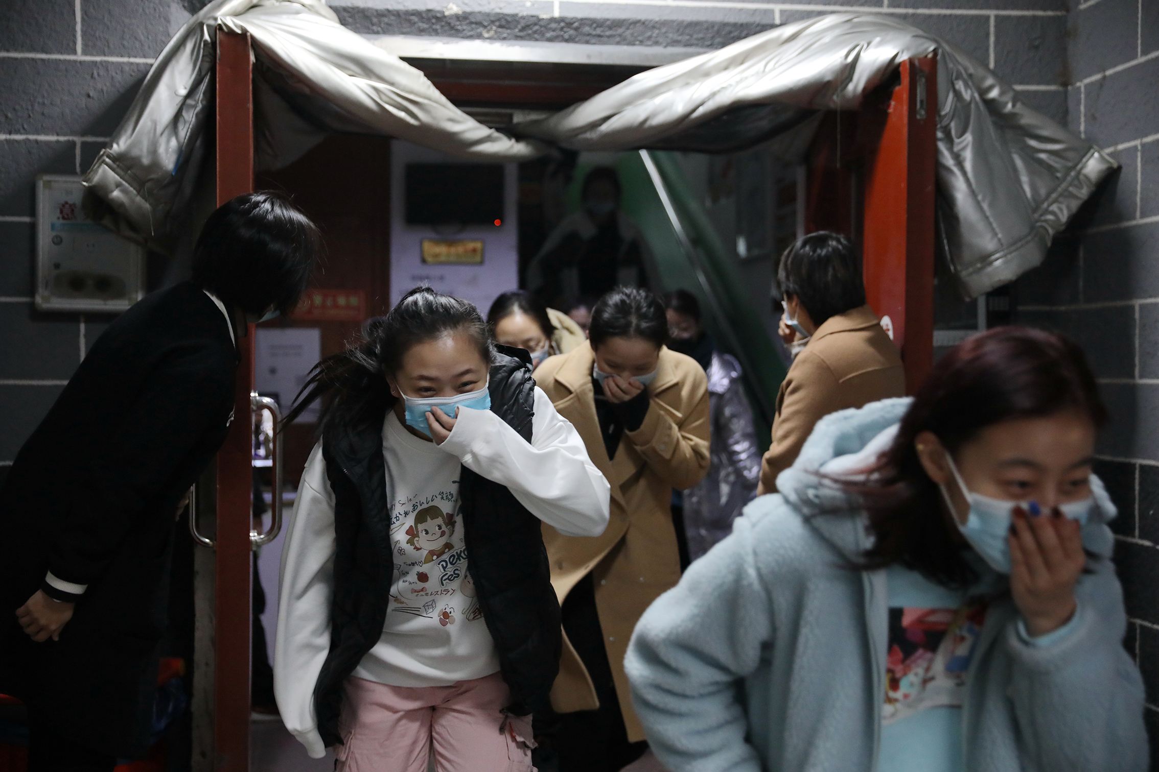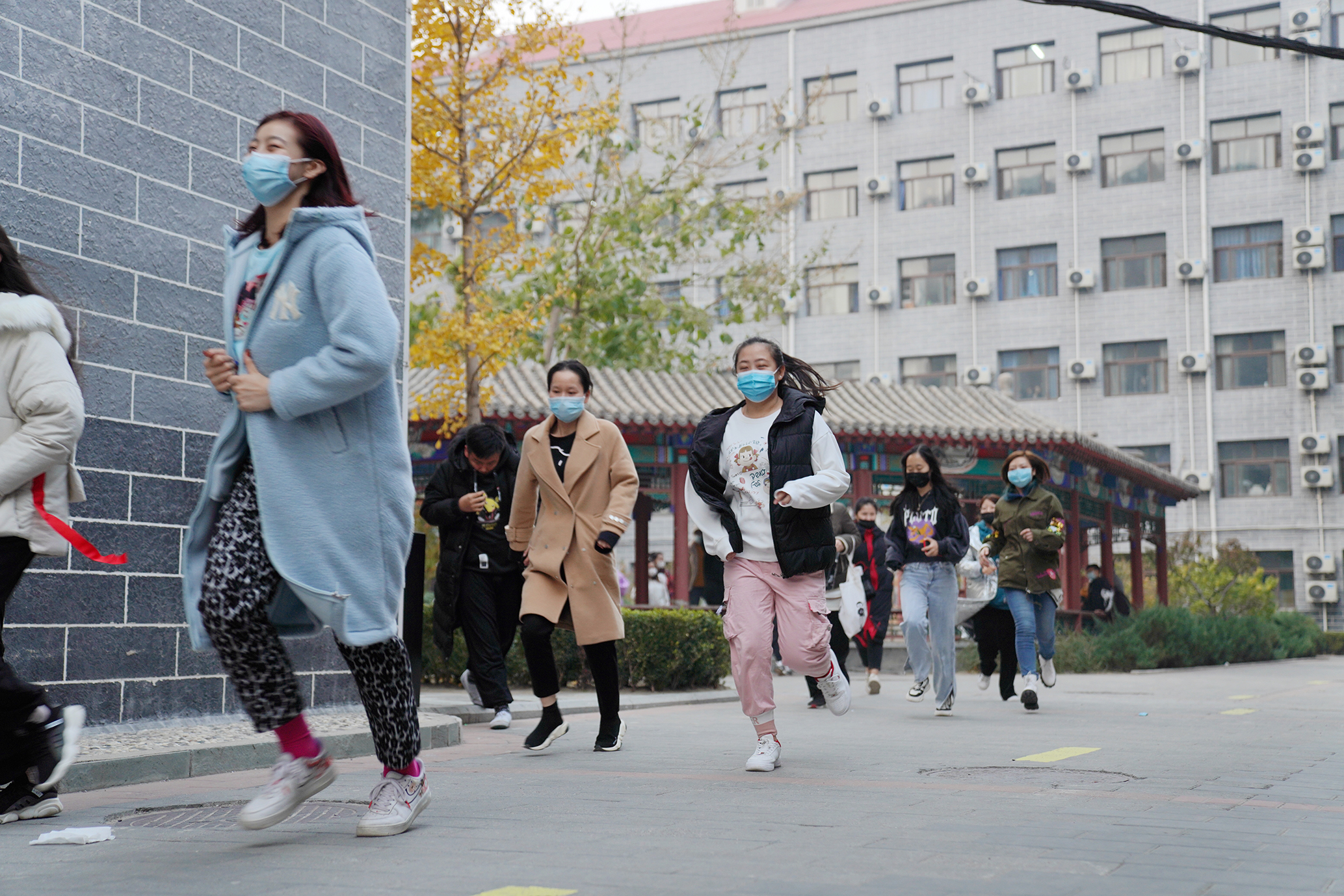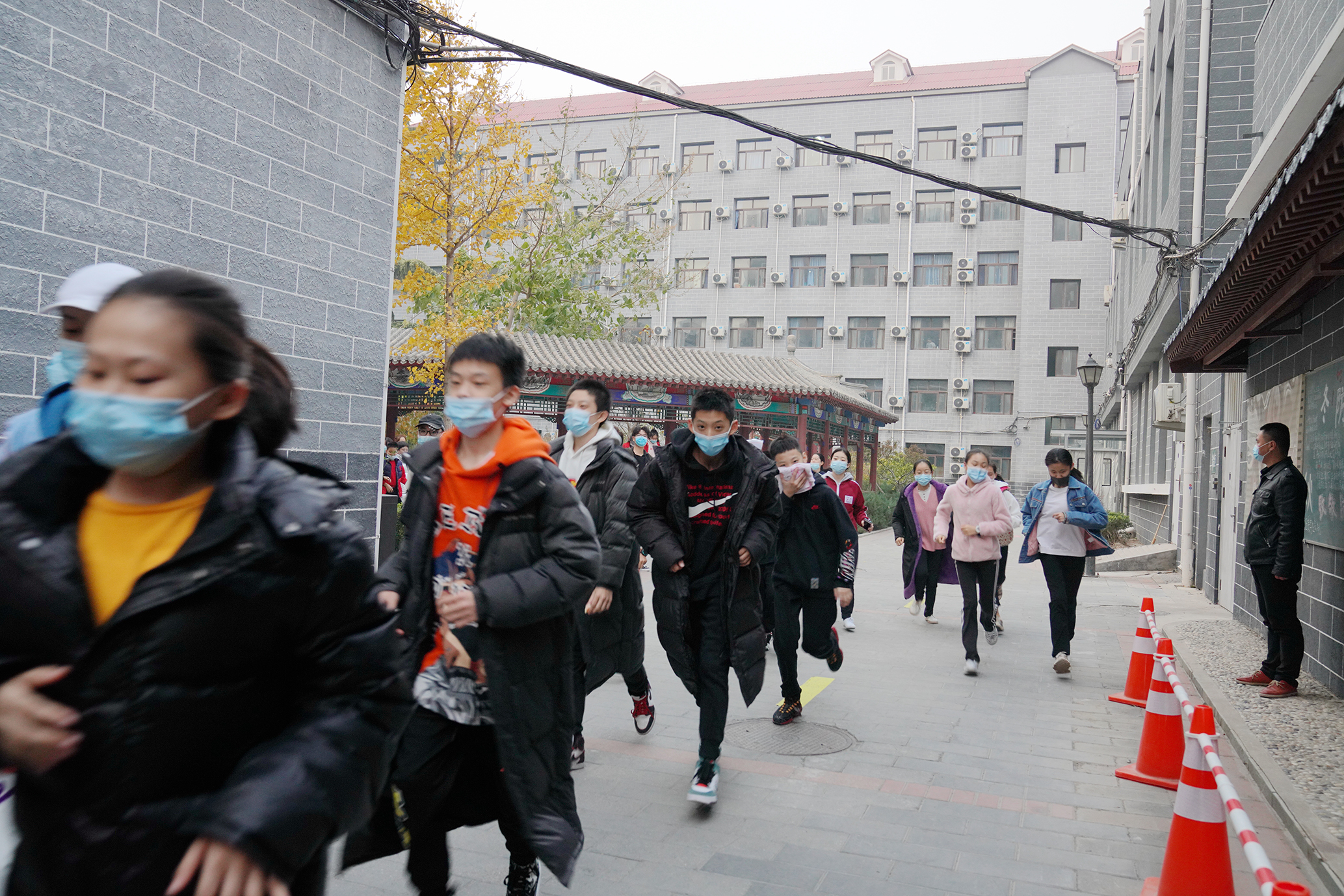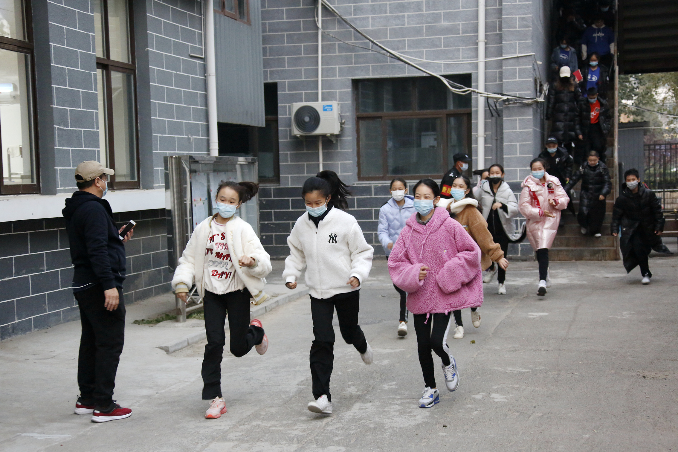 随着连续短促哨音的响起,学生在各层指挥员和疏导员的引导下,迅速用湿毛巾(佩戴口罩代替)等捂住口鼻、弯腰靠右前行,有序展开逃生演练活动,快速疏散至指定安全区域。整个逃生演习活动用时3分40秒。