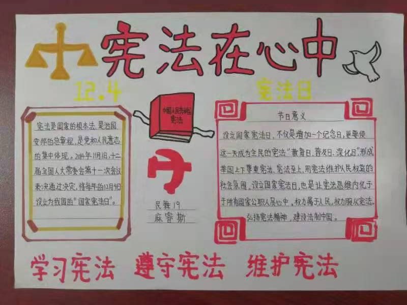 学院组织全院中专34个班级861名在校学生,在各班班主任老师们的组织下,分别召开了学习宪法主题班会。学院党委书记毕兆炜、院长黄珊珊、副院长黄平、法制办公室(学院行政办公室)主任王静及学生处主任助理李洋分别入班与学生们交流。各班班主任老师积极准备,内容丰富多彩,以观看《宪法公益宣传片》、宪法诵读学习、知识竞答、绘制板报等方式开展,形式上回避了教条的说教,各班以实际出发,结合本专业充分发挥学生才艺,讲身边事,讨论焦点话题等,各班班会组织的有声有色。