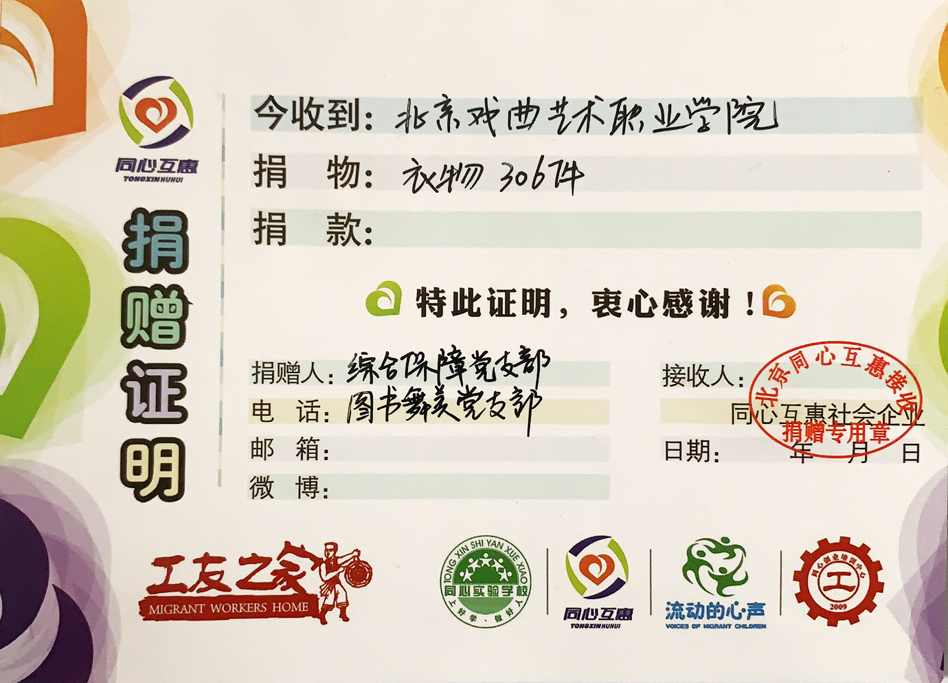 综合保障党支部联合图书舞美党支部开展献爱心捐赠活动