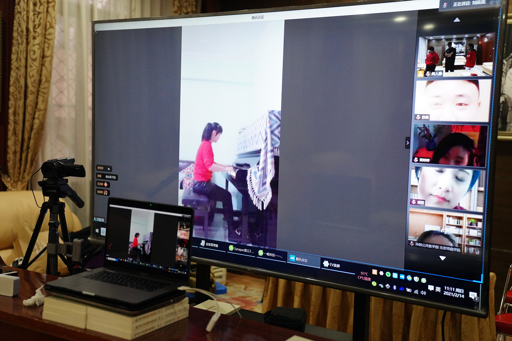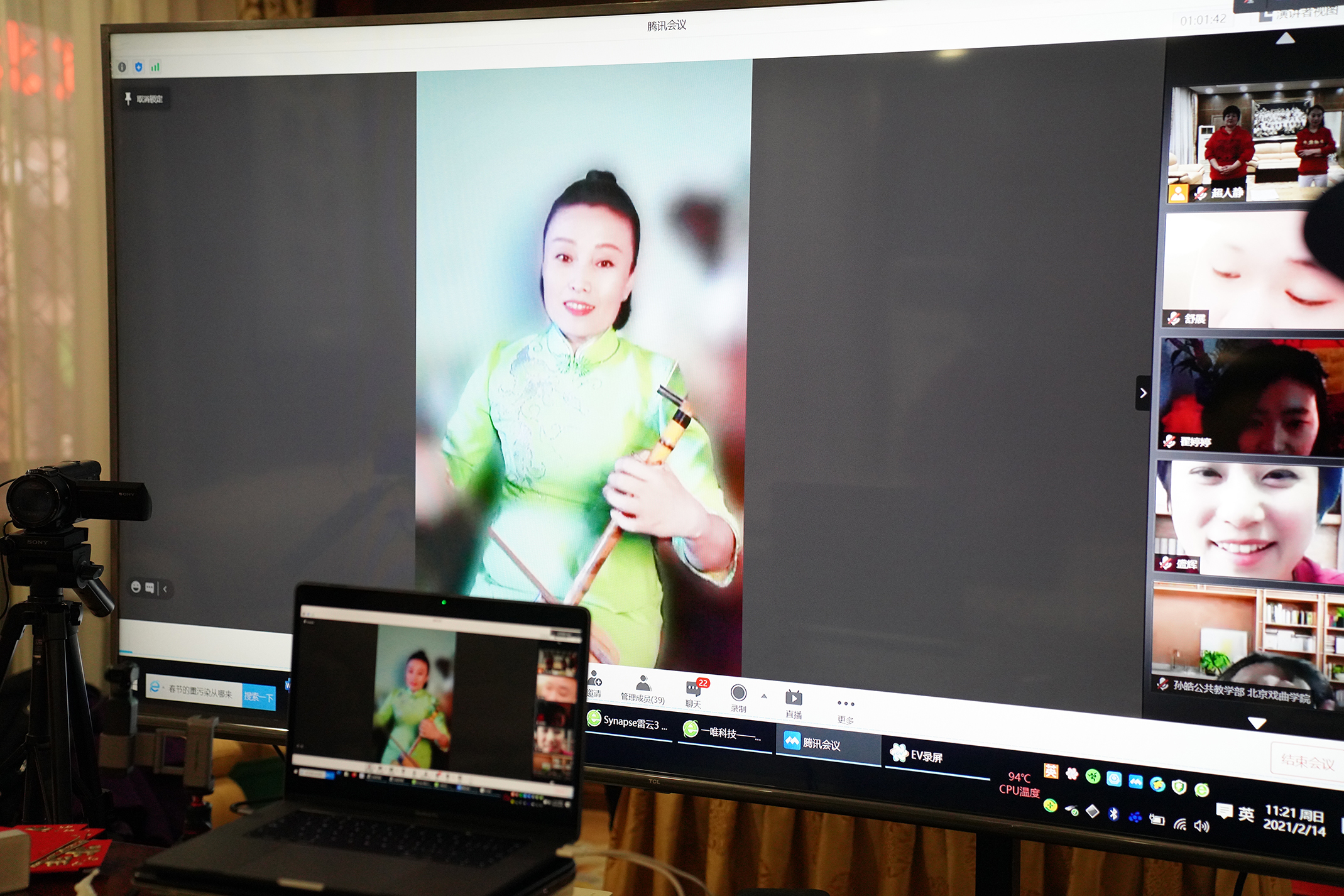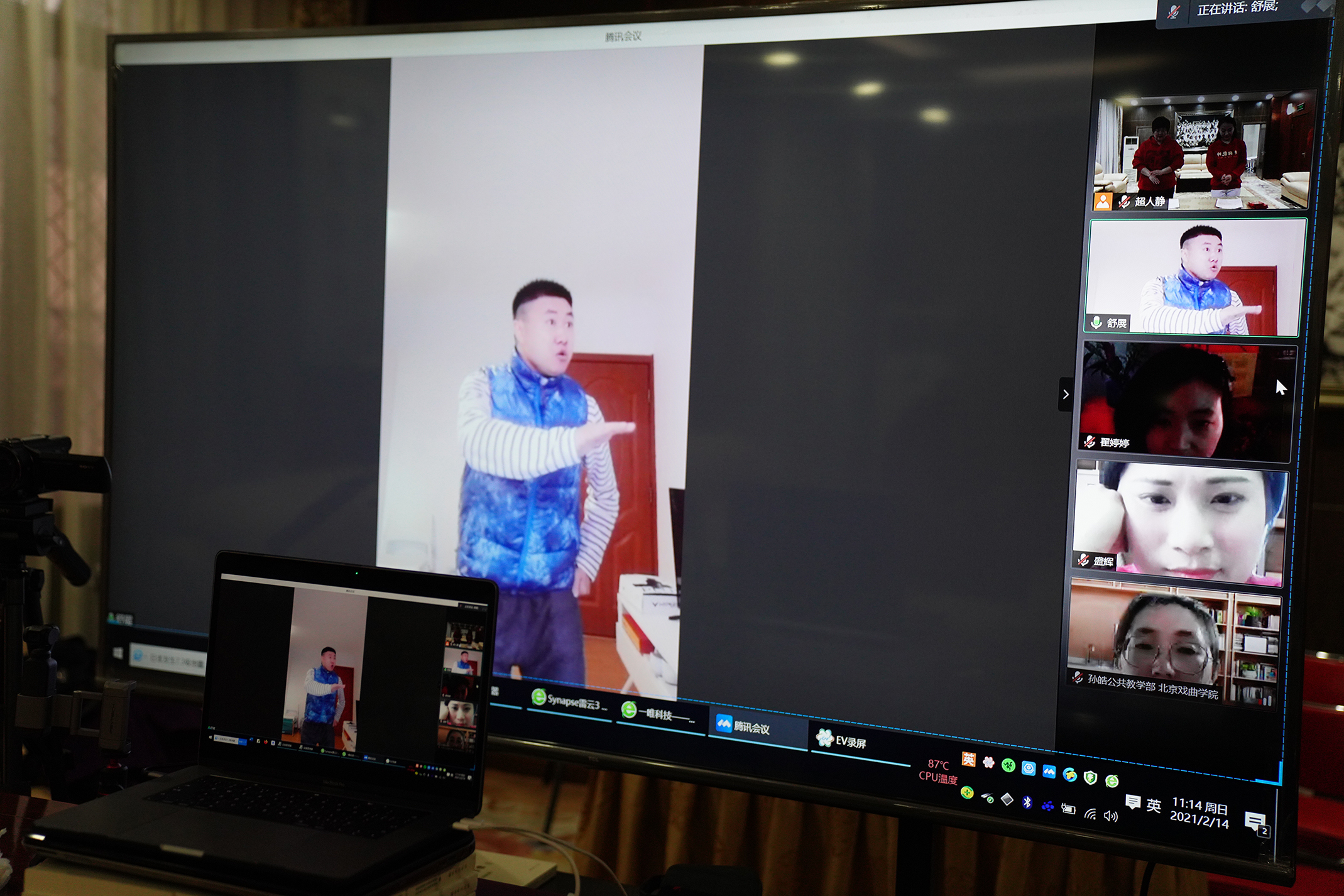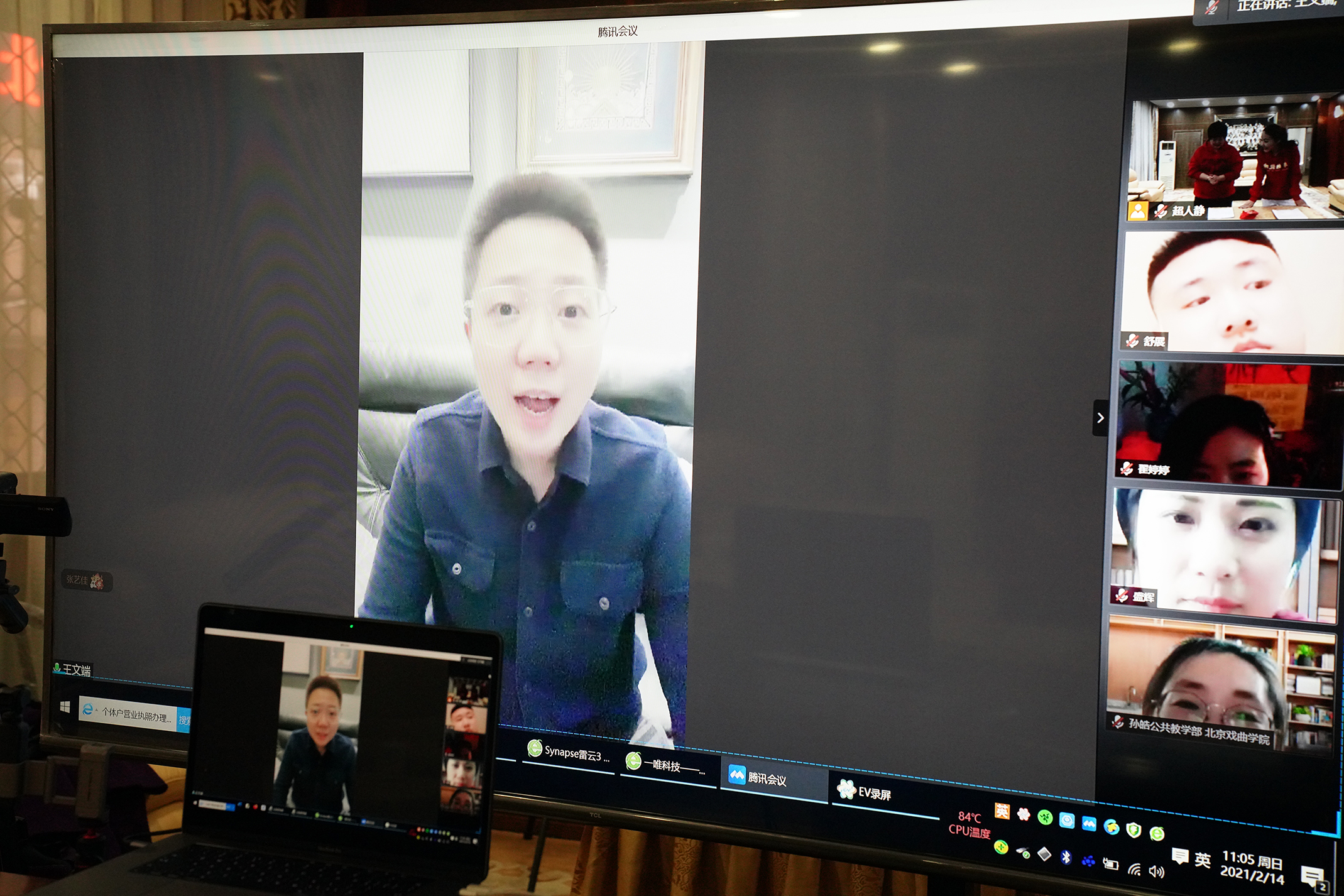 2021年2月14日(大年初三),为了让这些留京过年的老师们过一个红红火火,热热闹闹的春节,北京戏曲艺术职业学院工会精心策划组织了一台线上的联欢会,为老师们送上新春的祝福。此次联欢会在学院排演场设置了主会场,每位留京过年的老师通过腾讯会议线上连线的方式同步观看。党委书记、工会主席毕兆炜;院长黄珊珊;副院长黄平、吴蕾、许翠参加了活动。